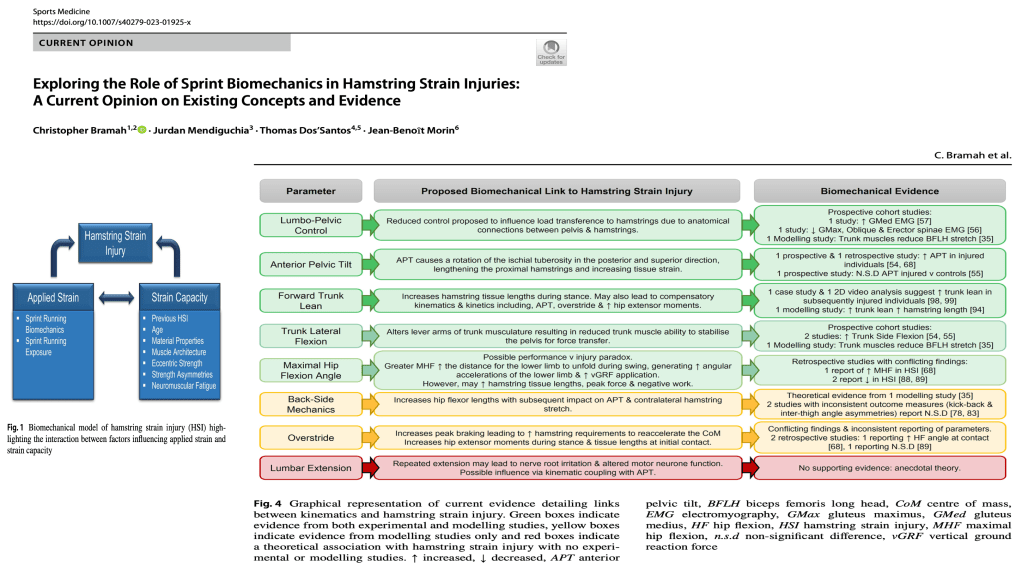 2025 was a game-changer for research into how sprint mechanics impact hamstring muscle strain and, as a result, the risk of injury. For years, there was a big argument going on about whether there was any proof of a relationship, with some people saying “there’s no evidence, so there’s no relationship” and others saying “absence of evidence is not evidence of absence”. People like Chris Bramah, Jurdan Mendiguchia and myself were on the “we need to study things” side of this debate. Back in 2023, we published an opinion piece for Sports Medicine that looked at the links between sprint biomechanics and hamstring strain, and the existing evidence or justifications from functional anatomy.