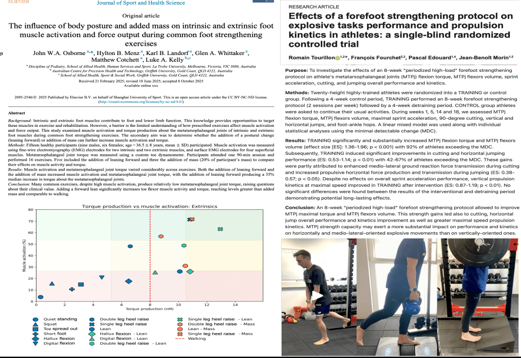 This topic has been a focus of our research since 2020 and a key to my training practice for years. After showing in a 2024 study that foot metatarso-phalangeal (MTP) torque capability was correlated to key mechanical underpinnings of jump, change of direction and top speed performance (e.g. ground impulse at top speed or during a broad jump or force orientation during a change of direction), Romain Tourillon passed his PhD under my supervision with a great training study published in 2025.