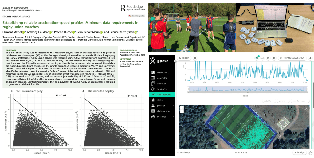 Since our proof-of-concept paper in 2019, the in-situ profile of acceleration and speed outputs in field-based team sports (initially soccer) has developed in the literature in soccer (e.g. Patrick Cormier or Pauline Clavel’s works) but also in rugby (e.g. the very interesting methodological paper with associated open source code by Miguens et al.). In 2025, Clément Maviel published this paper on how to build and interpret reliable AS profiles in elite rugby. He was working on a PhD project at RC Toulon rugby at the time. If you’re not familiar with this concept, you can read a previous blog post or listen to the podcast we did with Martin Buchheit in 2024.