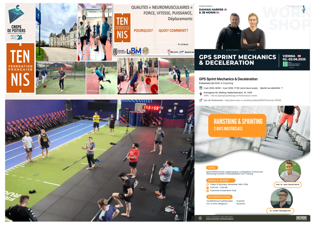 In 2025, I spent a lot of time teaching, sharing and explaining these ideas, new results and how they could be used. There were all sorts of sports and settings involved, like the French Tennis Football, Triathlon or Rugby Federations, the NCAA Football and Basketball consultancy, and lots of physiotherapists groups in France and Europe. The 2025 highlights for these teaching and training activities were probably the 10-week programme for sprint power and acceleration performance with the U17 team of our professional club in Saint-Etienne, a great and innovative 2-day workshop on “Deceleration and Acceleration Performance” with Damian Harper in Austria (check out Damian’s great papers on deceleration, such as this 2025 one), and a 2-day masterclass on hamstring injury management and sprint performance in Amsterdam with Jurdan Mendiguchia (read Jurdan’s most recent paper on a sprint table test here).